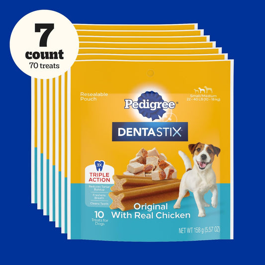 DENTASTIX Small/Medium Dog Dental Treats Original Flavor Dental Bones, 5.57 Oz. Pack, Pack of 7 (70 Total Treats)
